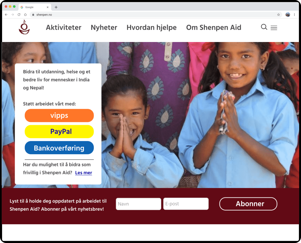 A prototype was made based on the vision and goals of the organization and a feature comparison of websites of other charity organizations. The prototype was presented to the board to gain insight into the board members needs and expectations. Follow -up interviews were conducted to collect data on how the solution would be perceived and used.